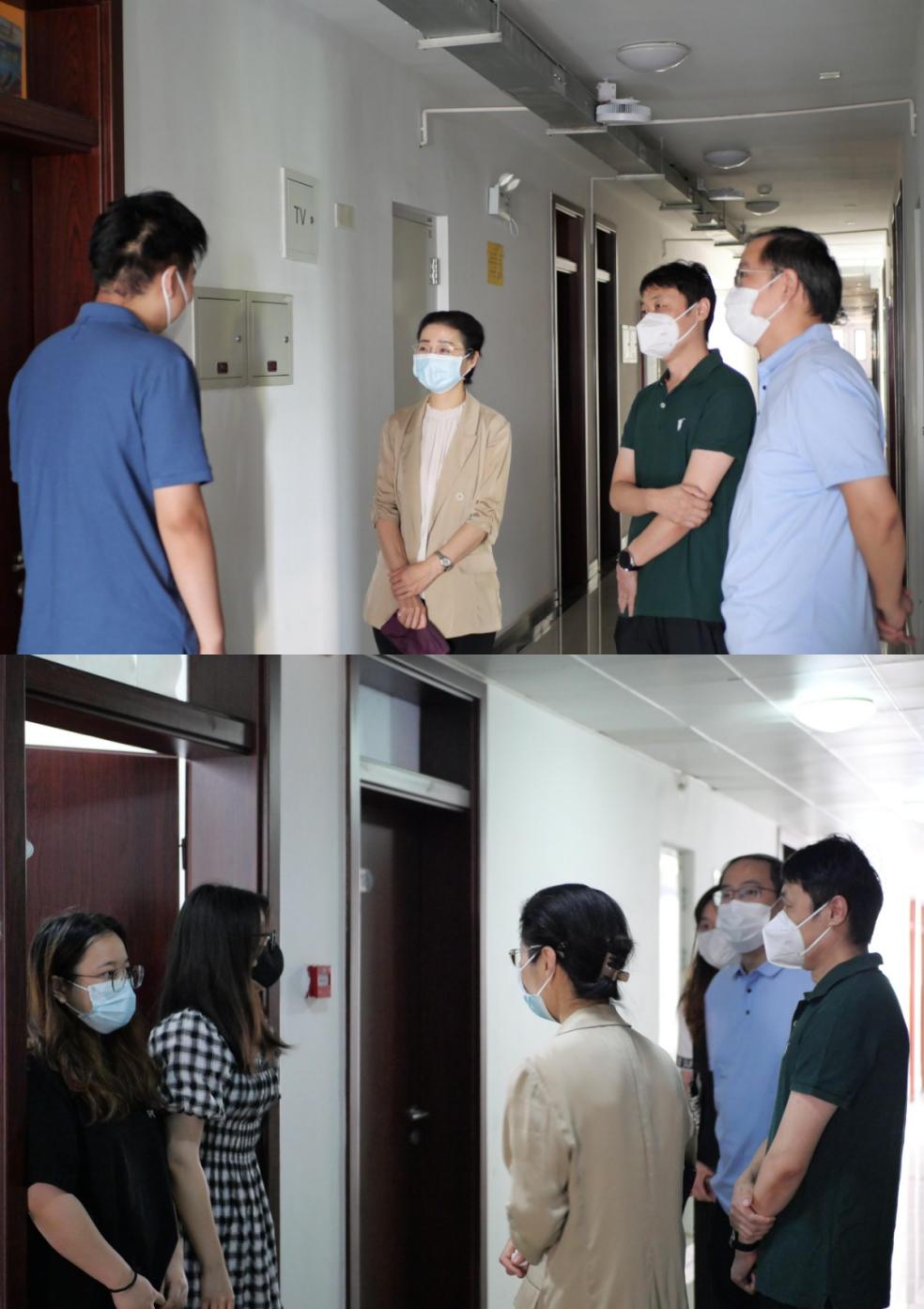 领导还走入了沙河院区新生宿舍,与同学们深入交流。沙河院区共有研究生宿舍2栋,我院男女生大都分别居住在两栋楼的5、6层。卜春梅与同学们亲切地交谈,询问同学们从哪来,在哪位导师门下,勉励同学们要尽快完成角色转换,适应新环境、融入新集体。同学们也向老师们问好,并且表达了自己的生活诉求,齐磊为他们提出了一些解决建议。