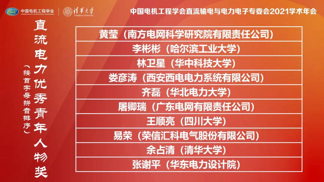 纪念大会对齐磊教授荣获“直流电力优秀青年人物奖”的颁奖词为:“齐磊长期从事先进输电装备电磁问题方面的应用基础研究,并致力于解决制约我国重大工程建设的“卡脖子”难题,成果应用于特高压换流阀、柔性直流换流阀与高压直流断路器的国产化及自主创新”。