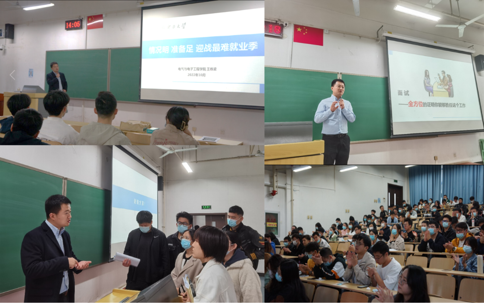 就业数据,王栋梁和同学们分析了就业趋势、就业岗位变化情况、高校就业人数变化、就业市场饱和度等情况,希望同学们能综合社会需求和个人实际情况,合理调整预期、主动出击,同时通过学校就业指导中心网站、企业招聘官网、身边的老师、朋友等渠道获取就业信息,尽快聚焦目标单位范围,为求职准备立好靶位。