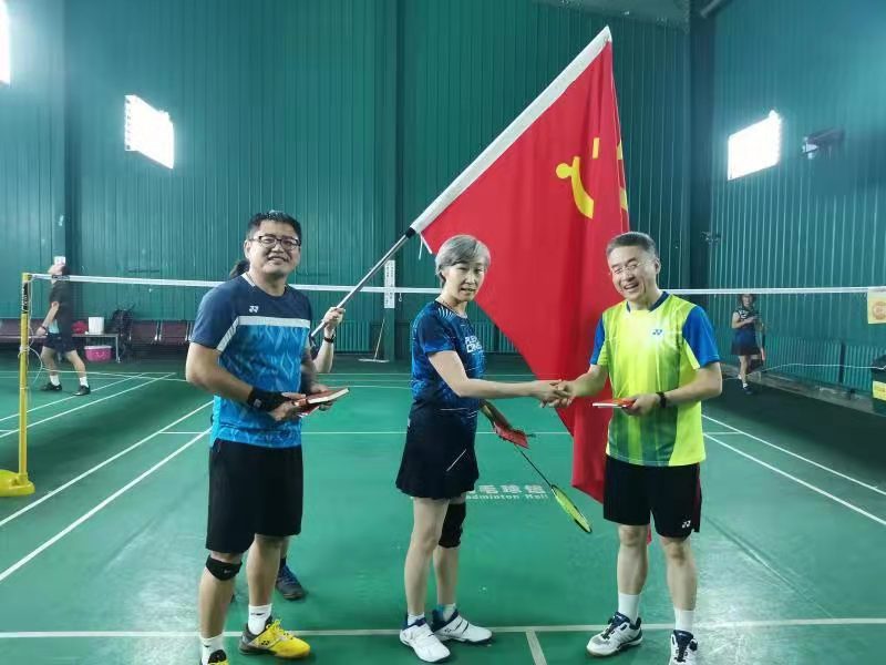 赛后,全体队员在党旗下合影,学院党委组织员张宝良老师为比赛队员发放了奖品,比赛奖品是盖有电院羽协logo印章的笔记本和电气与电子工程学院党委的内部学习小红书。