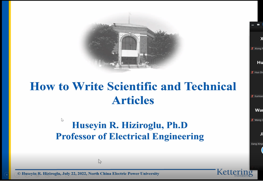 2022年7月22日及8月19日,电气与电子工程学院邀请了IEEE Transactions on Dielectrics and Electrical Insulation主编、美国Kettering大学Huseyin R. Hiziroglu教授做成果提炼、论文写作的系列专题讲座。讲座由学院电磁与超导电工研究所卞星明教授主持,电院双百班学员及电磁所、高压所博士生、硕士生近200人聆听了两次线上报告。
