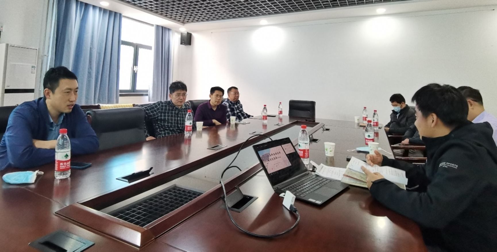 王硕向各位老师介绍了学院学生工作的整体情况,并且指出扎实安全稳定工作至关重要,同时要营造和谐健康的生活氛围,加强培育优秀人才力度,以双带双百双行动喜迎建党一百年为依托,开展班级特色活动,鼓励学生积极参与其中,做好思想引领、价值引领。