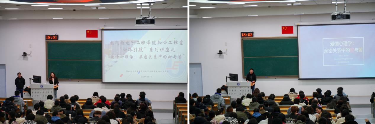 为深入贯彻落实学校2024年春季学期学生工作会议部署要求,进一步加强学生心理健康教育工作,更好营造心理育人氛围,3月7日晚六点,电气与电子工程学院二级心理辅导站知心工作室邀请北京航空航天大学积极心理体验中心副主任李卫华副教授作“爱情心理学:亲密关系中的甜与苦”主题讲座,院内外420余名师生积极参加。