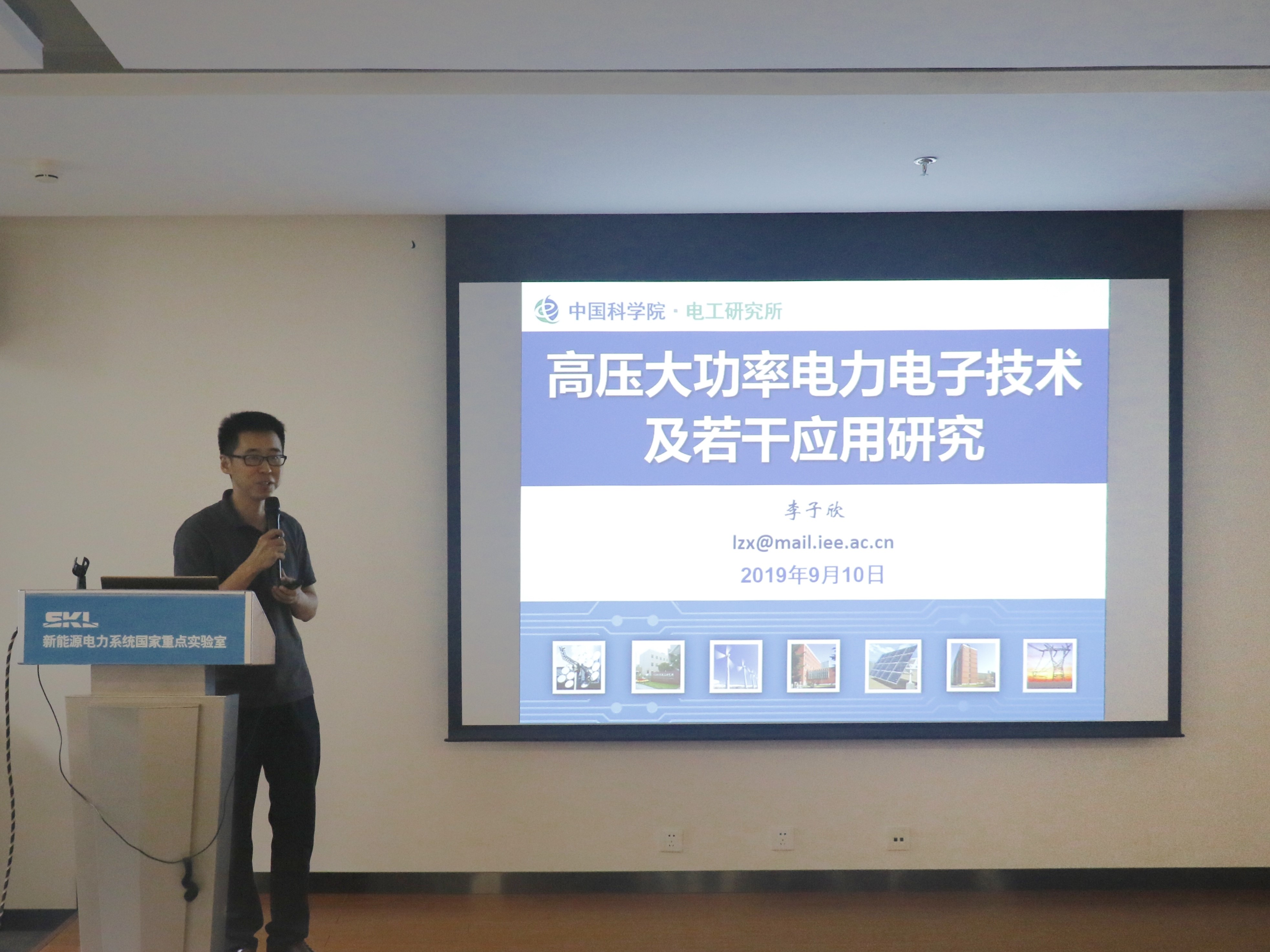 紧接着,中科院电工研究所李子欣教授针对“高压大功率电力电子技术及若干应用研究”做了第二场报告。李教授就电力电子与现代电力系统、MMC型柔性高压直流输电技术、电力电子变压器及其在实际工程中的应用做了介绍,并分享了自己参与南方电网的南澳三端柔直工程的调试经历。