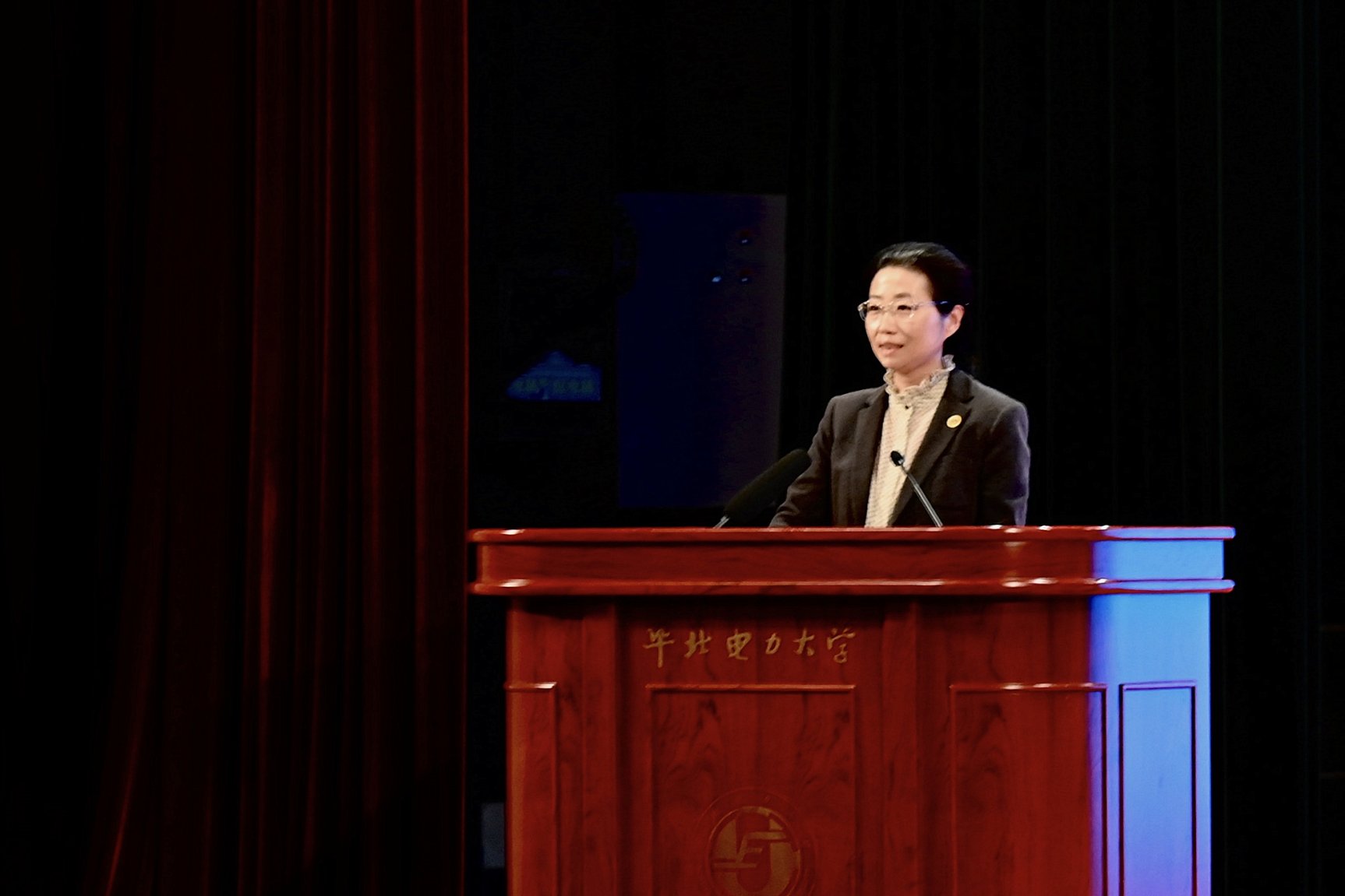 毕天姝副校长发表重要讲话,对全体新生的到来表示了热烈的欢迎,并从三个方面对2020级新生提出了殷切希望。一是希望大家爱我所选,追求卓越,以饱满热情迎接崭新未来。介绍了国家能源电力发展的领先情况,面临的“卡脖子”问题,以及学院学科的发展进步状况,希望全体新生既能认识到目前国家社会存在的机遇,学校和学院提供的良好发展环境,也能感受到时代赋予的使命,学校和学院的期望,爱校、爱学院、爱专业,明志笃行,努力发展。二是希望大家目标远大,锐意进取,以创新精神直面未知挑战。要杜绝到了大学就可以“躺赢”的心态,保持奋斗之心,与国家发展、时代需求相一致,确定好自己的远大目标。要认真做好落实,把远大目标分解到每一月、每一天,落小落细,严格自律,践行起来。三是希望大家做好角色转换,扎下根去,以奋进姿态迎接当下生活。毕天姝分享了自己在本科和研究生阶段的学习经历,希望同学们保持严谨求实的学习态度和矢志不渝的学习热情;特别提出大一新生要重视做好由高中到大学、由学习到科研的过渡。