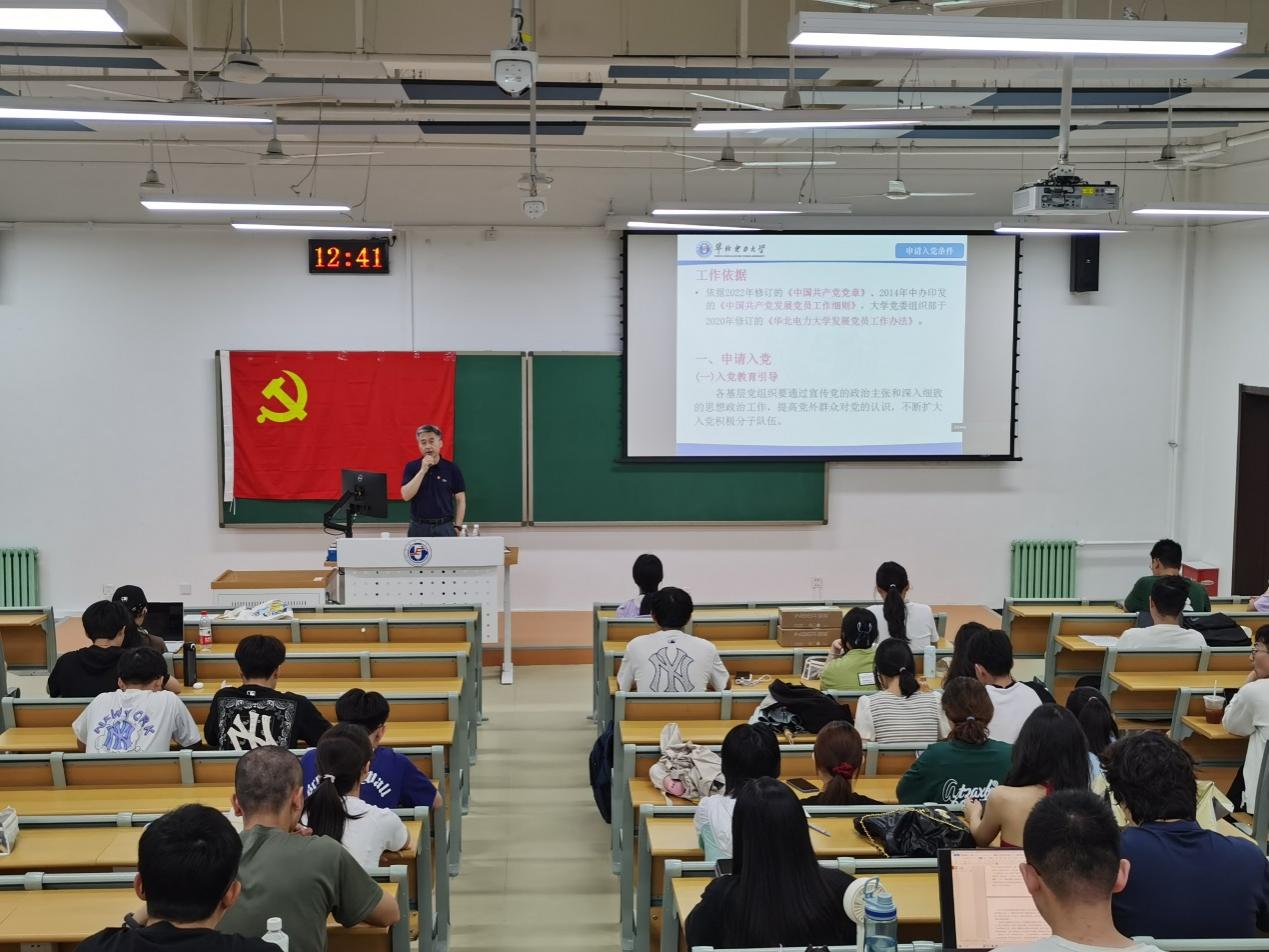 2024年5月22日中午,电气与电子工程学院第57期入党积极分子培训班第四次党课在主B101举行。学院正处级组织员张宝良以“入党的规定和程序”为题,从“入党程序及要求、思想入党和组织入党、以实际行动向党组织靠拢”三方面来讲授党课。