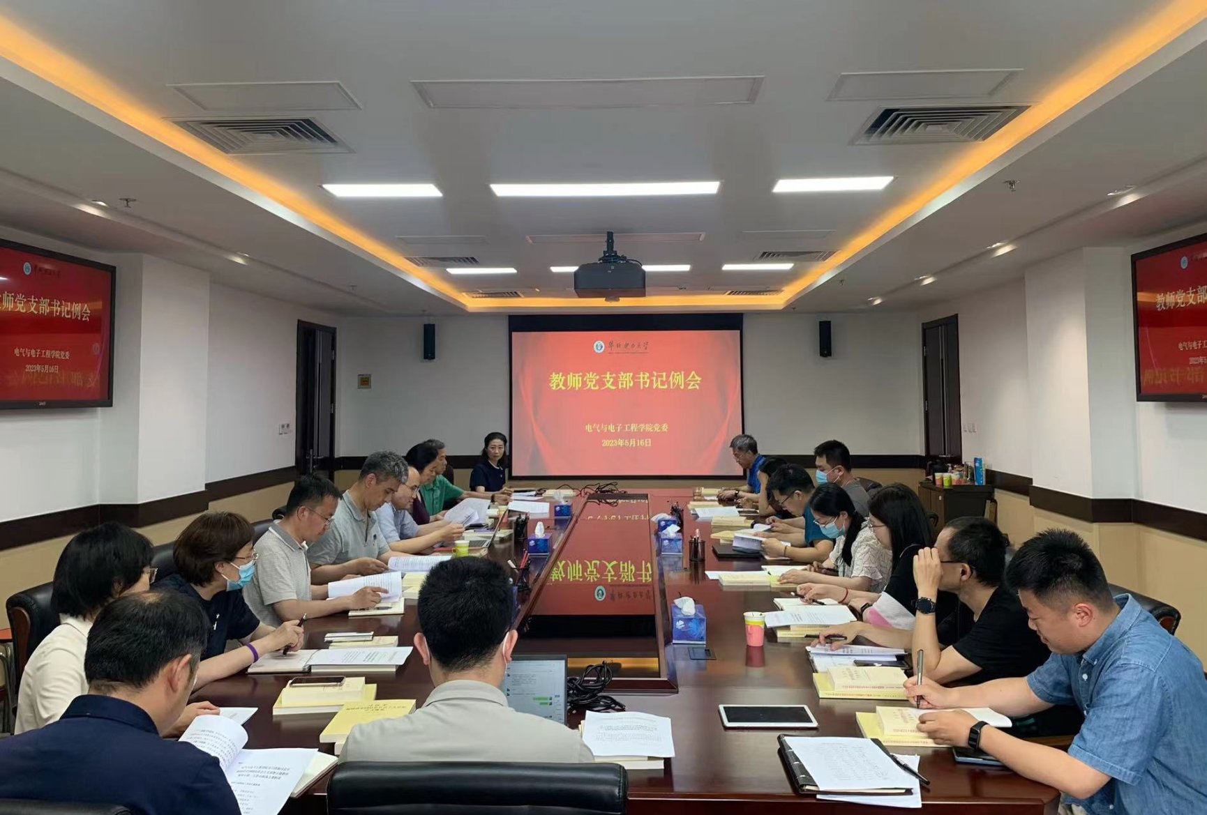 5月16日下午,电气与电子工程学院召开5月份教师党支部书记例会,学院党委书记卜春梅、正处级组织员张宝良、各教师党支部书记、部分支委以及学生党员代表参会。会议由卜春梅主持。