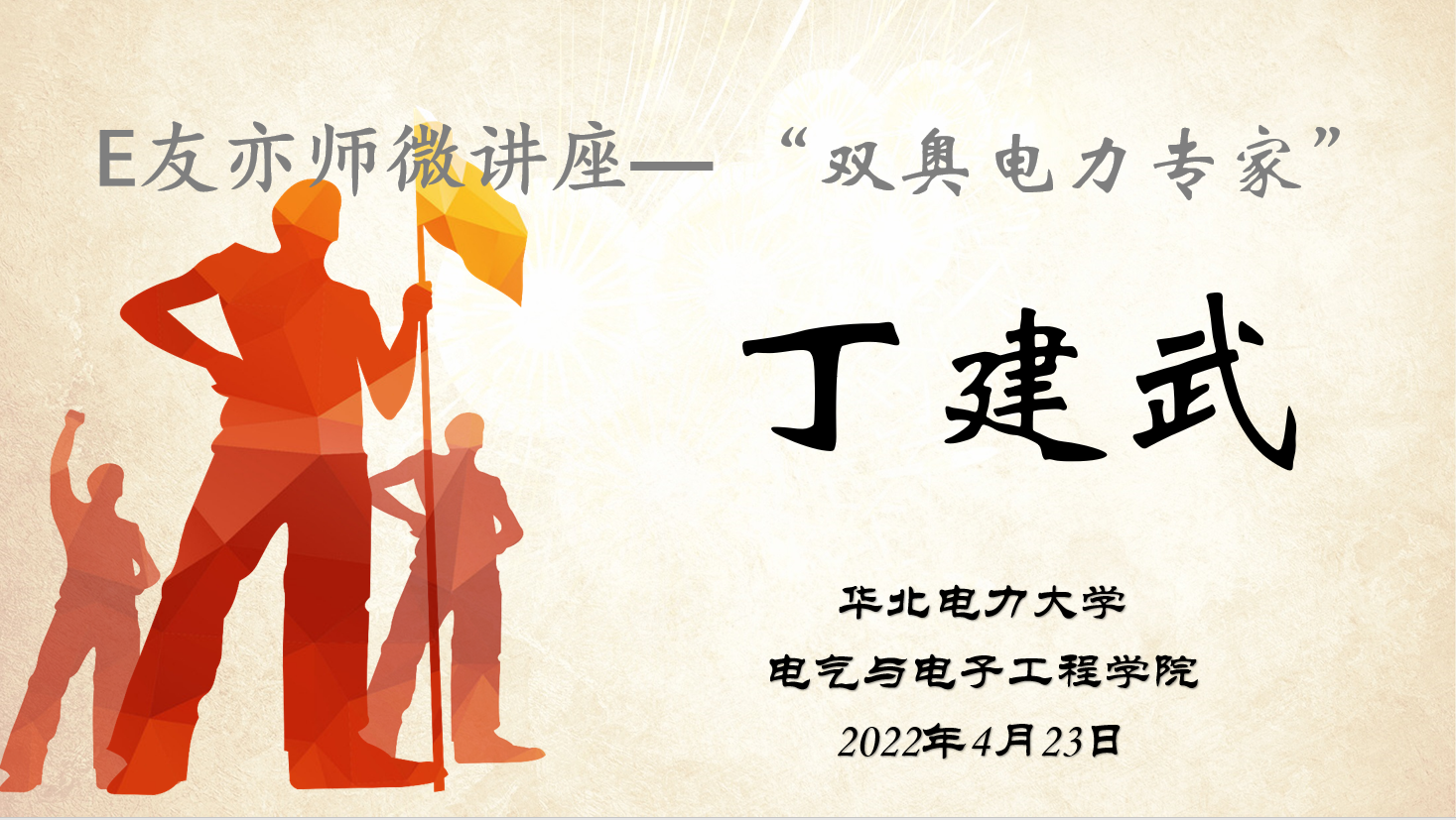 为加强优秀电力行业前辈与在校学生的联系,营造“大鱼前导、小鱼从游”的学生成长有益氛围,发挥模范前辈的引领作用,4月23日,电气与电子工程学院邀请了北京市电力公司高级工程师丁建武作为主讲人,为同学们开讲了一堂生动的线上“E友亦师”微讲座。“双百班”同学在内的230余名学院本硕博学生参加了微讲座,微讲座由本科2019级辅导员赵赫奕主持,学院党委副书记王硕和多位辅导员老师参加了活动。