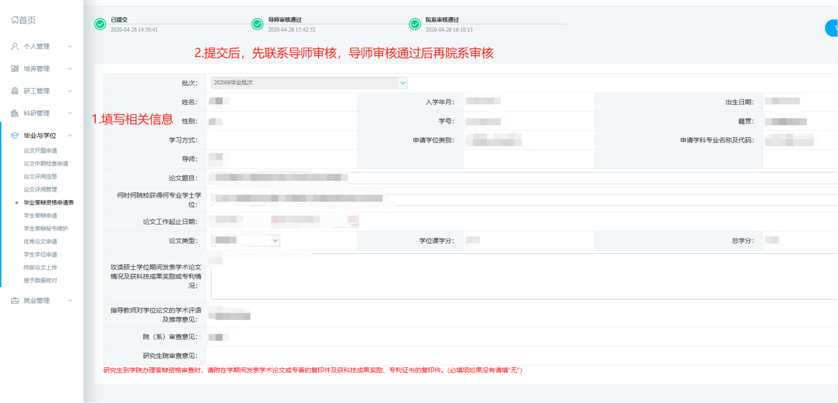 4、答辩申请
