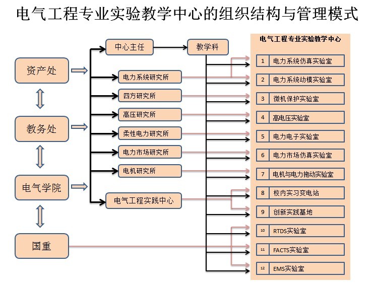 华北电力大学电气工程专业实验教学中心是由电力市场仿真实验室、电力电子实验室、微机保护实验室、电力系统仿真实验室、电力系统动模实验室、高电压实验室、电机与电力拖动实验室、FACTS实验室和RTDS实验室整合组建而成,总面积4174平方米,固定资产3335万元,是学校覆盖专业最广、面向学生人数最多的实验教学中心之一。2011年初,新能源电力系统实验室被评为国家重点实验室。
