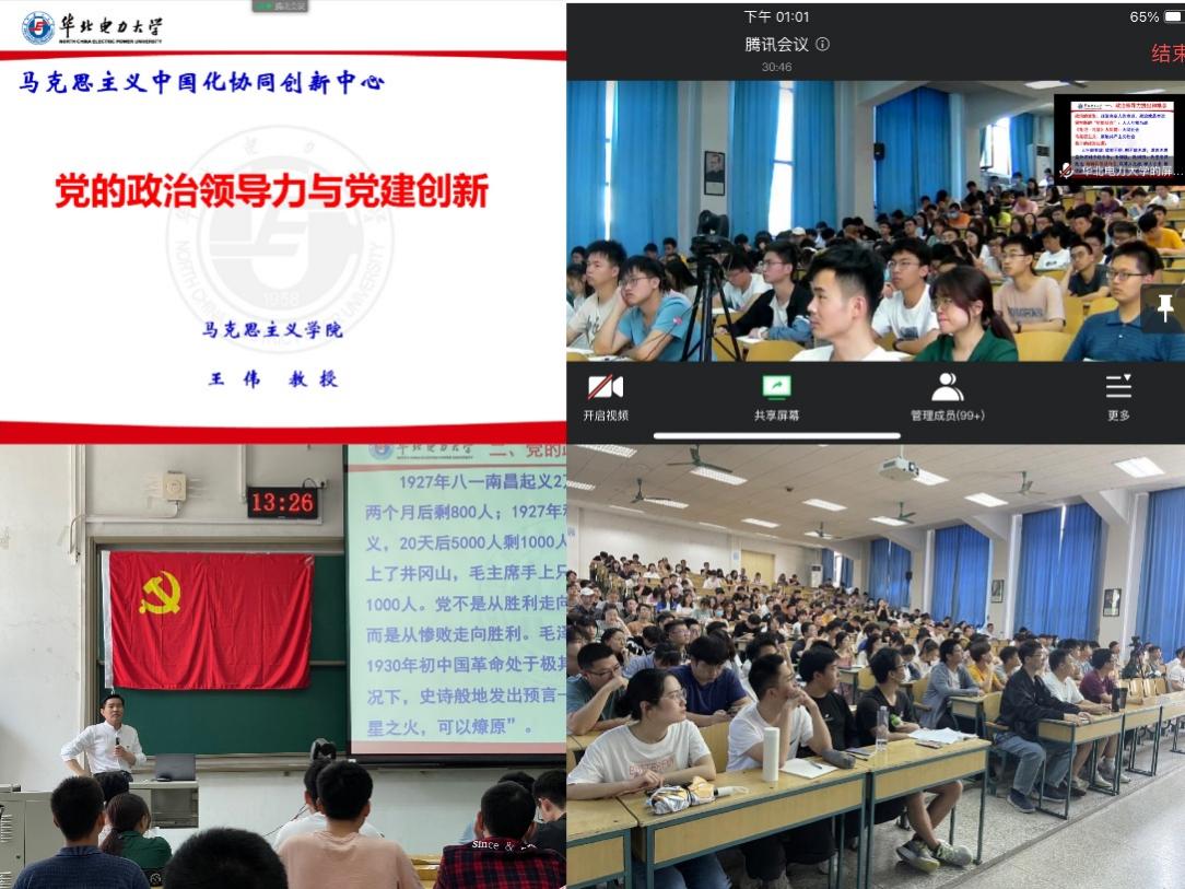 5月18日中午,由电气与电子工程学院团委、研究生会主办的“忆百年峥嵘,筑时代芳华”八校电气类院系联合党建活动第三场在教一14阶顺利举办。马克思主义学院院长、教授王伟为大家生动讲授了一堂“党的政治领导力与党建创新”主题报告。来自清华大学电机系、西安交通大学电气工程学院、华中科技大学电气与电子工程学院、浙江大学电气工程学院、重庆大学电气工程学院、上海交通大学电子信息与电气工程学院、武汉大学电气与自动化学院等七所高校院系研究生学生干部,以及华北电力大学电气与电子工程学院研究生骨干及第五十一期入党积极分子近500人,共同以线上线下相结合的方式听取报告。活动由电气与电子工程学院党委副书记王硕主持。
