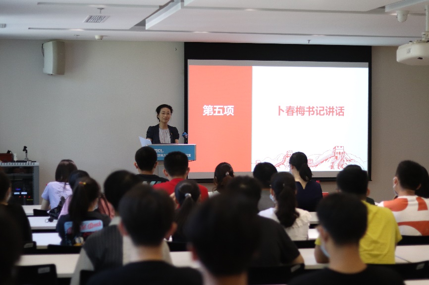 “双带双百双行动”育人项目开展情况,并结合自身工作感悟,深情寄语广大同学们:合理选题,聚焦时代热点;科学规划,把握时代节拍;朋辈协作,彰显青年担当;脚踏实地,做精做细做实,打造出高水平、高层次、高质量的实践成果,向建党100周年献礼。