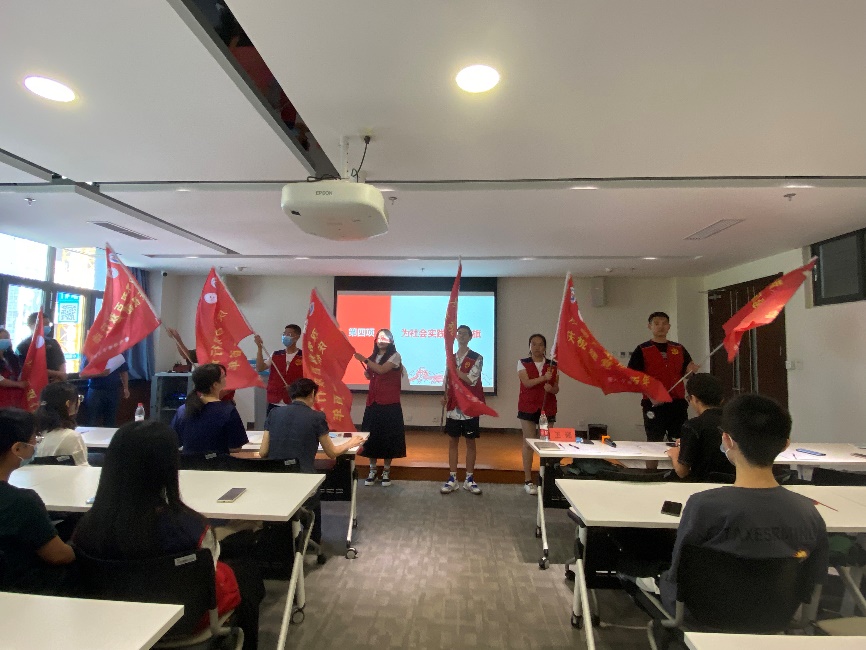 作出三点保证:确保安全、认真学习、热心奉献,表现出同学们高涨的实践热情和激昂的斗志。仪式中,卜春梅、王硕等嘉宾为即将出征的暑期社会实践团队代表授旗。