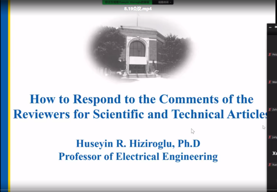 本次专题讲座分为两部分,主题分别为“How to Write Scientific and Technical Articles”及“How to Respond to the Comments of the Reviewers for Scientific and Technical Articles”。会上,Huseyin教授结合自身多年的科研及工作经验,详细讲述了从论文形成到投稿录用的全过程。Huseyin教授介绍了行文前需要培养的论文写作思维、写作时论文每部分结构的组成与细节、投稿后如何妥当回应审稿意见等,并针对投稿、回复时需要注意的问题给出了专业的建议。现场提问环节,多名教师和同学打开摄像头踊跃提问,积极交流,会场气氛热烈,Huseyin教授耐心地解答了师生们关于论文写作安排、回复审稿意见等相关问题,对华北电力大学今年来在新型电工材料、高电压绝缘学科领域取得的成绩表示了高度认可和赞赏,对华北电力大学师生为IEEEDielectrics and Electrical Insulation Society、IEEE Transactions on Dielectrics and Electrical Insulation所作出的贡献表示感谢,对同学们的科研工作表示了祝福与期望。Huseyin教授强调,要时刻保持科学、专业、严谨的态度,虽然科研之路或有艰辛,但个人也能够在研究过程中增长见识、获得提升,最终能够为科技界中自己的专业领域做出贡献,寒窗苦读,终有所得。