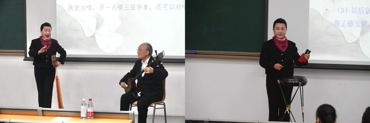 图3 杨菲老师演唱京东大鼓 图4 学生向龚彪老师提问