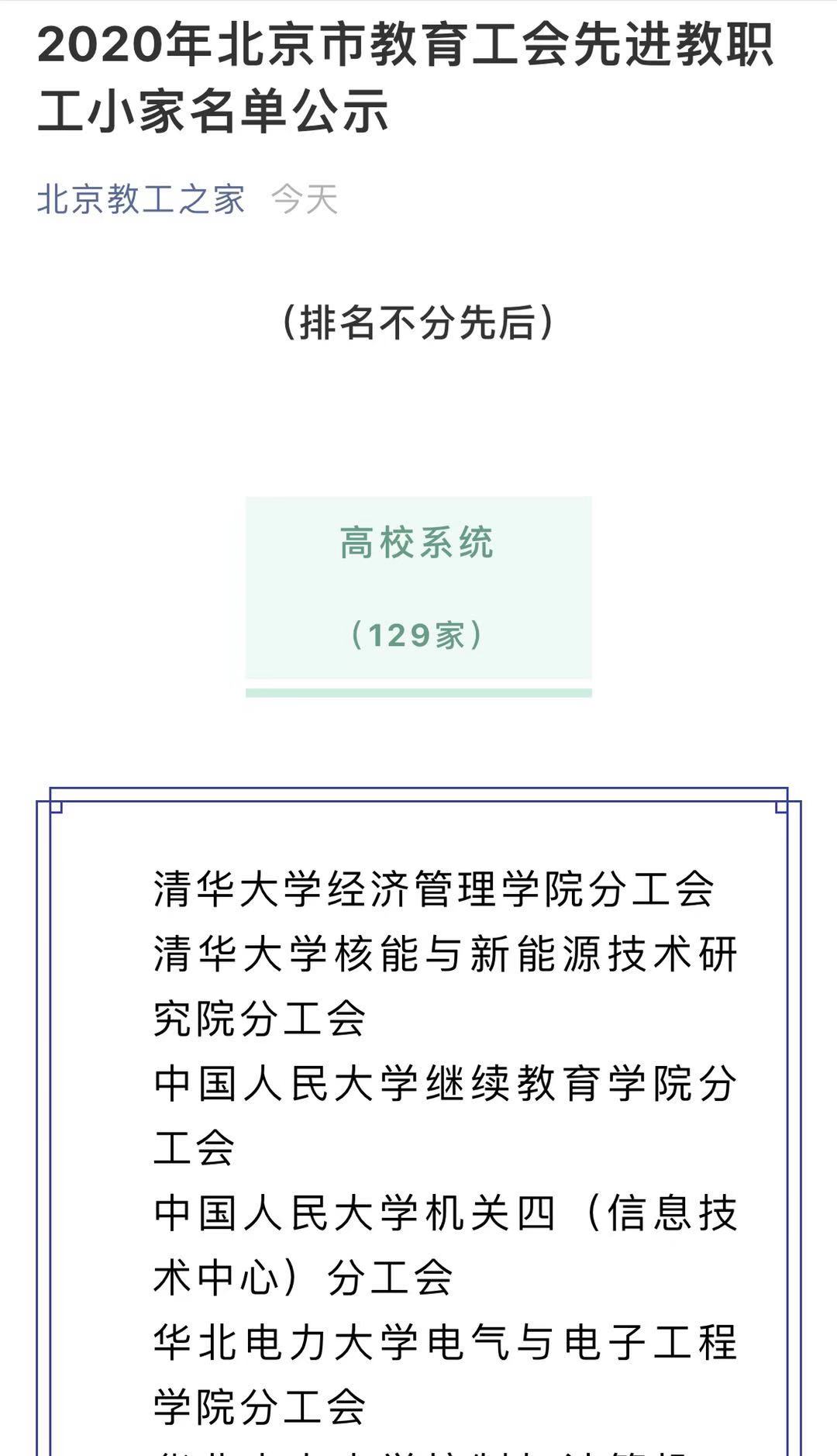 近日,电气与电子工程学院分工会在学校工会的正确领导下,在学院党政领导班子的大力支持下,经过全体工会会员的共同努力,获评2020年北京市教育工会先进教职工小家。