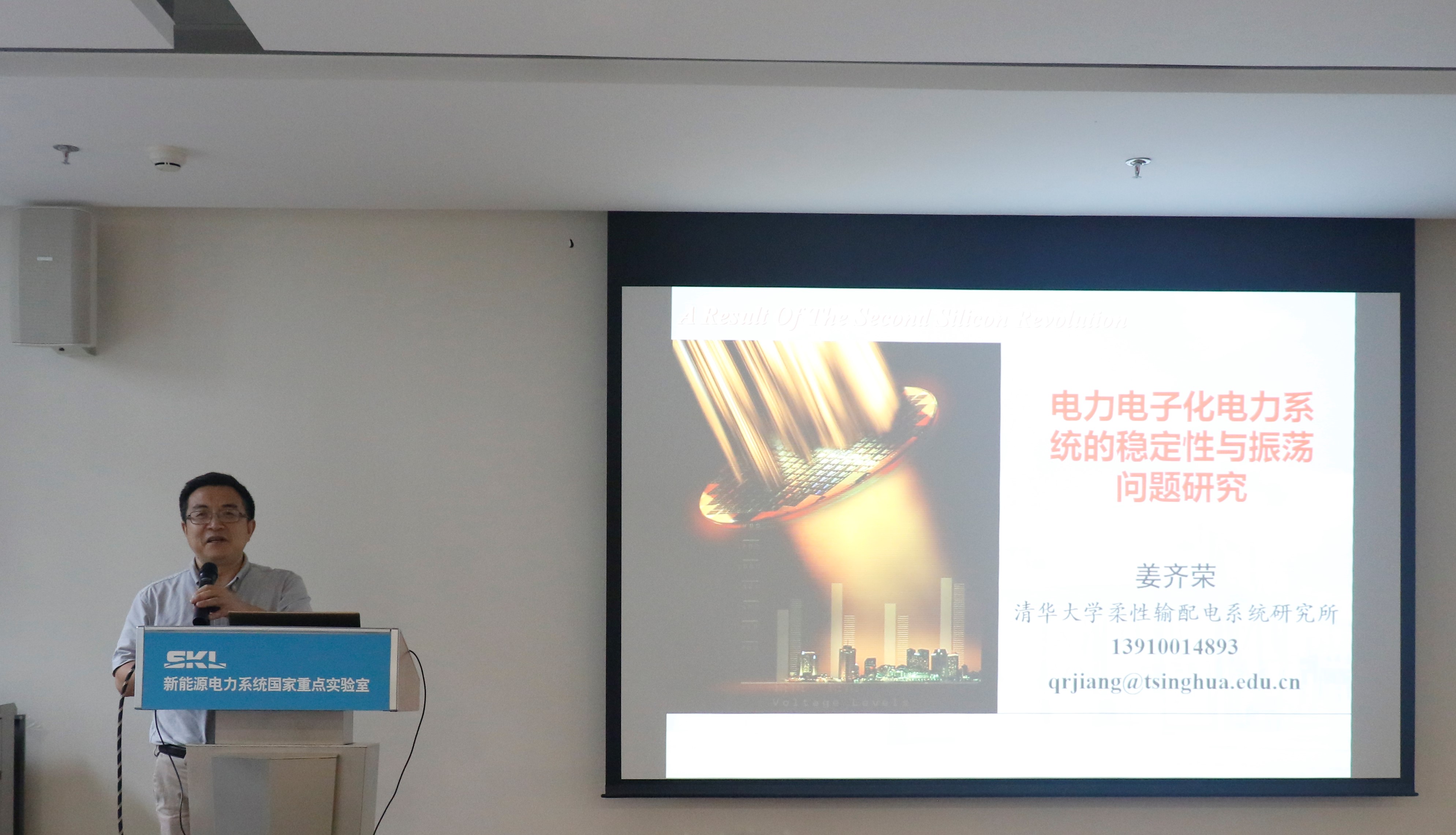 清华大学姜齐荣教授以“电力电子化电力系统的稳定性与振荡研究”为题做了首场报告,报告内容主要包括电力系统电力电子化趋势及存在的问题、系统暂态稳定性及振荡问题和非线性振荡抑制技术,同时他分析了电力系统电力电子化给传统的理论和技术带来的挑战,呼吁大家抓住电网发展的趋势,结合人工智能及新的控制技术进行深入研究。