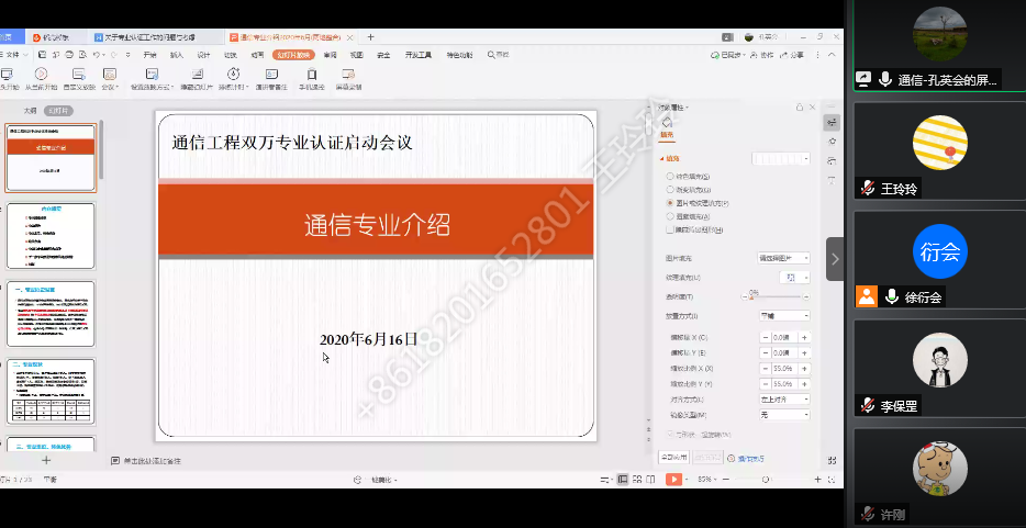 2020年6月16日20点至21点30分电气与电子工程学院通过腾讯会议召开了通信工程专业认证启动会,会议由电气学院主管本科教学副院长徐衍会主持。参加本次会议的人员包括,电子系主任戚银城,电子系副主任吕安强,教务处副处长杨世关、梁长屹,通信工程专业负责人赵雄文、孔英会,专业认证资深专家王泽忠、艾欣,以及主管学生工作的副书记、通信信息骨干教师等25人。