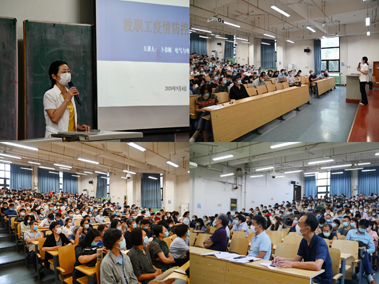 9月4日,电气与电子工程学院在主楼B101阶梯教室召开全体教职工大会,对学院教职员工进行“开学第一课”健康安全教育。