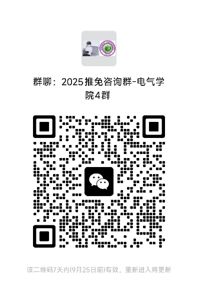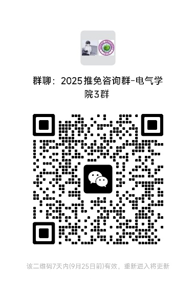 请务必扫描二维码加入2025年电气学院推免研究生咨询群,进入一个群即可。有任何问题可以通过微信群及办公电话咨询。